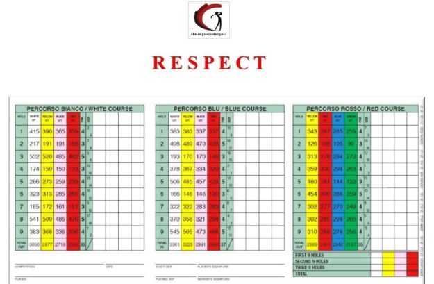 A tale proprosito vorrei indirizzare ai circoli di Golf ed alla Federazione una proposta che – per una volta – prende spunto da una buona iniziativa attuata nel gioco del calcio per sensibilizzare giocatori e pubblico sulla correttezza richiesta ai giocatori durante l’incontro. In quello sport da molto tempo la scritta RESPECT appare sulle fascette o magliette indossate da ogni giocatore ponendo così in evidenza un valore fondamentale che riguarda il comportamento da tenere , da parte di giocatori e staff , verso l’avversario ed il pubblico. Dato tutto ciò non suggerisco di fare indossare ad ogni golfista fasce o magliette con la stessa scritta ma semplicemente di porre in evidenza tale la parola su ogni score per ricordare ai giocatori l’invito . Viviamo tempi difficili nei quali la parola ” Rispetto ” deve riprendere il centro della scena al fine di offuscare la volgarità ed il pressapochismo che da troppo tempo si stanno diffondendo in modo incontrastato. Buon gioco a tutti.