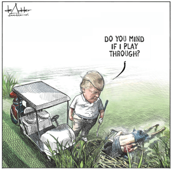La vignetta di Michael de Adder su Trump, i morti e gli imbecilli.